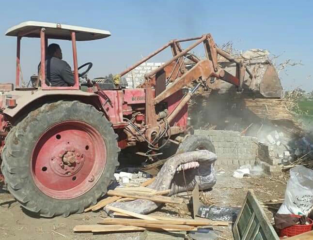 الأمن والإدارة الزراعية  بتنفيذ إزالة 3 حالات تعدى على الأراضي الزراعية ،عبارة عن غرف وأسوار بالطوب الأبيض وحفر أساسات على مساحة إجمالية بلغت 525 متر بزمام قرية مطرطارس وتم مصادرة معدات ومواد البناء واتخاذ الإجراءات القانونية اللازمة ضد المخالفين