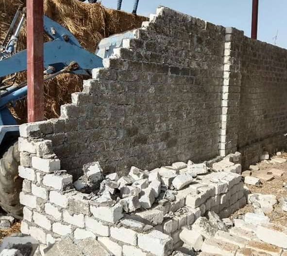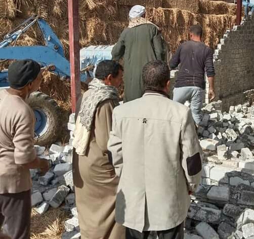 حيث تمكنت الحملات بالتعاون مع الوحدة المحلية بقرية جبلة من تنفيذ إزالة حالة تعدى عبارة عن أسوار بالطوب الأبيض على مساحة 400 متر بزمام دوار جبلة وتم مصادرة معدات ومواد البناء وتسليم الموقع الى الجمعية الزراعية لتسوية الأرض وإعادة زراعتها
