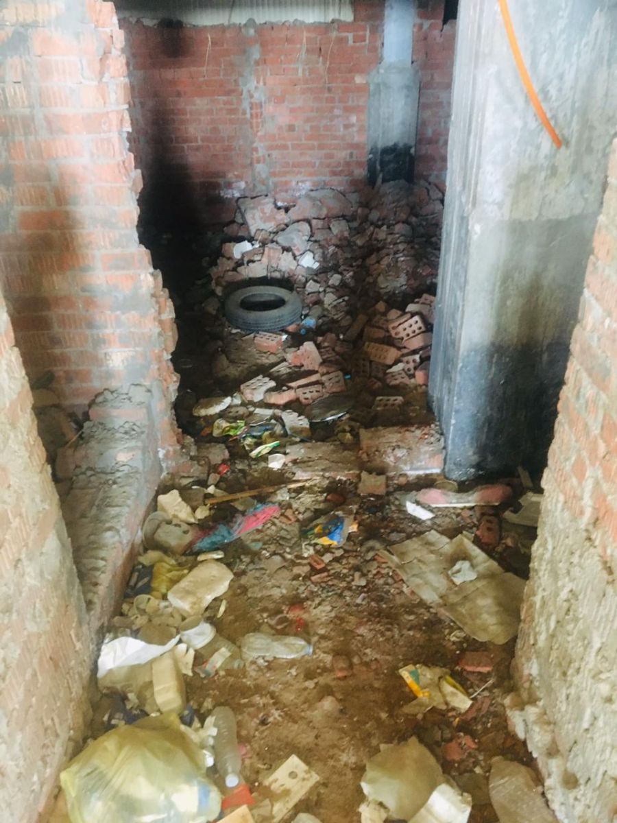 لعدم وجود حماية أو عزل لسطح لدور الارضى حيث تم تكسير البلاط والعزل للسطح قبل انشاء الهيكل الخرسانى لضمان سلامه الشدة الخشبية .