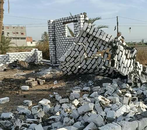 حيث قامت الحملات بتنفيذ إزالة حالتي تعدى على الأراضى الزراعية  على مساحة 200 متر بزمام قرية دار السلام عبارة عن غرف واسوار بالطوب الأبيض وتم مصادرة معدات ومواد البناء وذلك بحضور المحاسب محمد خيرالله
