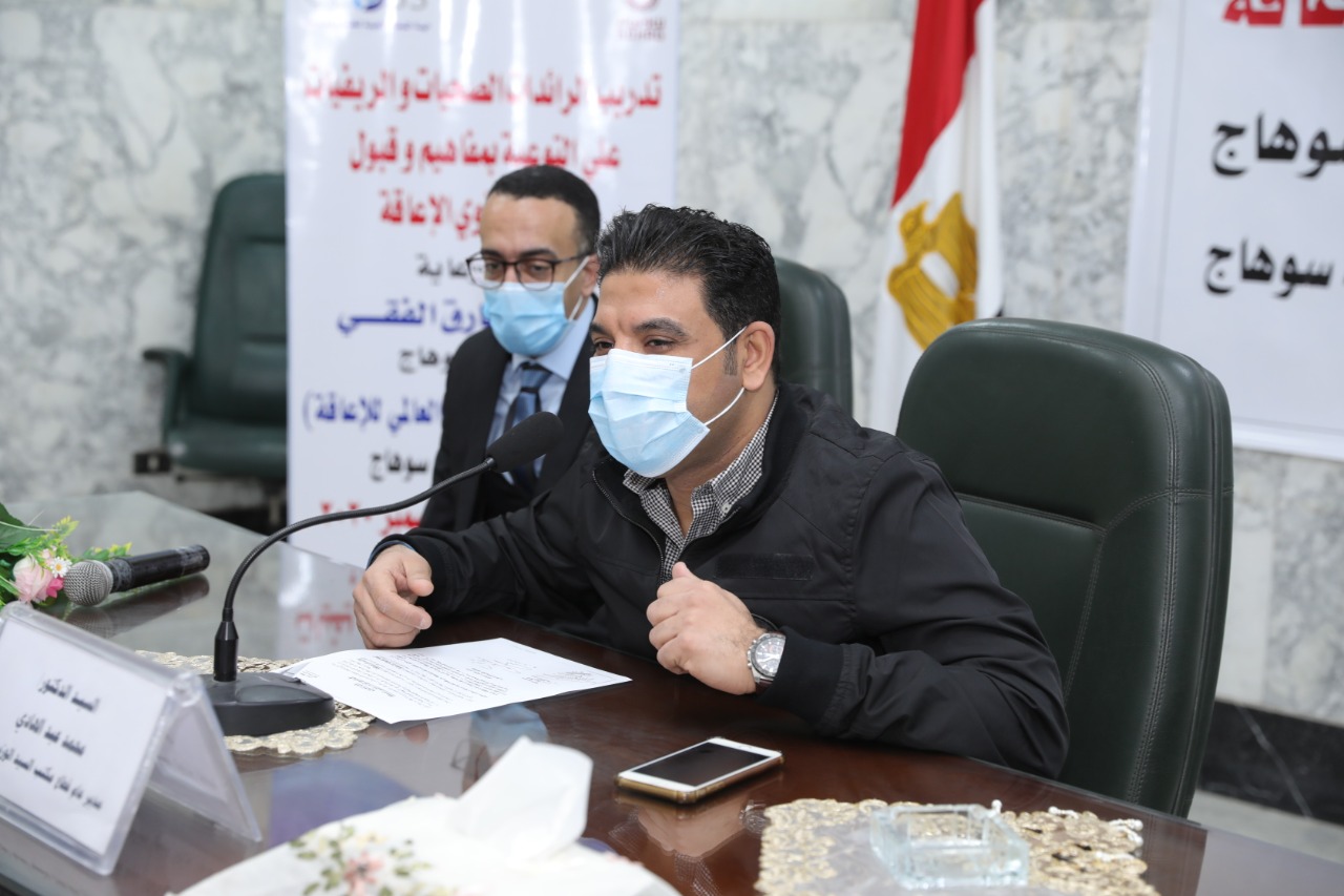 شهد اللواء طارق الفقي محافظ سوهاج، اليوم الخميس، بقاعة المؤتمرات بديوان عام المحافظة، فعاليات البرنامج التدريبي لعدد 60 رائدة صحية وريفية للتوعية بمفاهيم وقبول الأشخاص ذوي الإعاقة، في إطار الاحتفال باليوم العالمي للإعاقة، والذي نظمته المحافظة بالمشاركة مع الهيئة القبطية الإنجيلية للخدمات الاجتماعية .