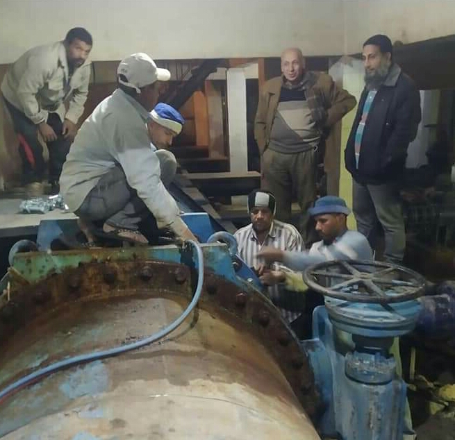 مواقع وأماكن مختلفة وهم عنبر المياه النقية وعنبر المياه العكره وعنبر المرشحات وخطوط الخدمة بالمحطة وأعمال التطهير العكر وأعمال الربط بين الخط قطر 1000 مم والخط قطر 600 مم بمنطقة باغوص أمام مخزن الكتب بالإضافة إلى تركيب محابس 400مم وتغيير محابس هواء وقفل علي الخط 100مم وأضاف