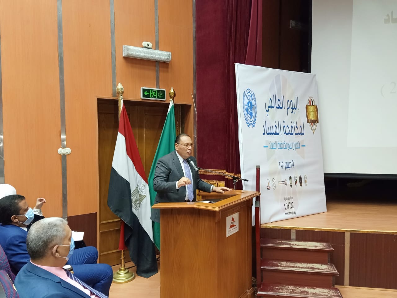 بدأت الإحتفالية بتلاوة آيات من الذكر الحكيم أعقبها عرض فيديو عن دور هيئة الرقابة الإدارية في محاربة الفساد، أستعرض خلالها اللواء أحمد فيظ الله، الأهداف الإستراتيجية الوطنية لمكافحة الفساد، وألقي ندوة عن الفساد وكيفية مواجهته، أوضح فيها أن الفساد هو إستغلال السلطة العمومية لتحقيق مكاسب خاصة وينقسم إلى فساد كبير يصدر من أصحاب الوظائف القيادية وذوي المناصب العليا.