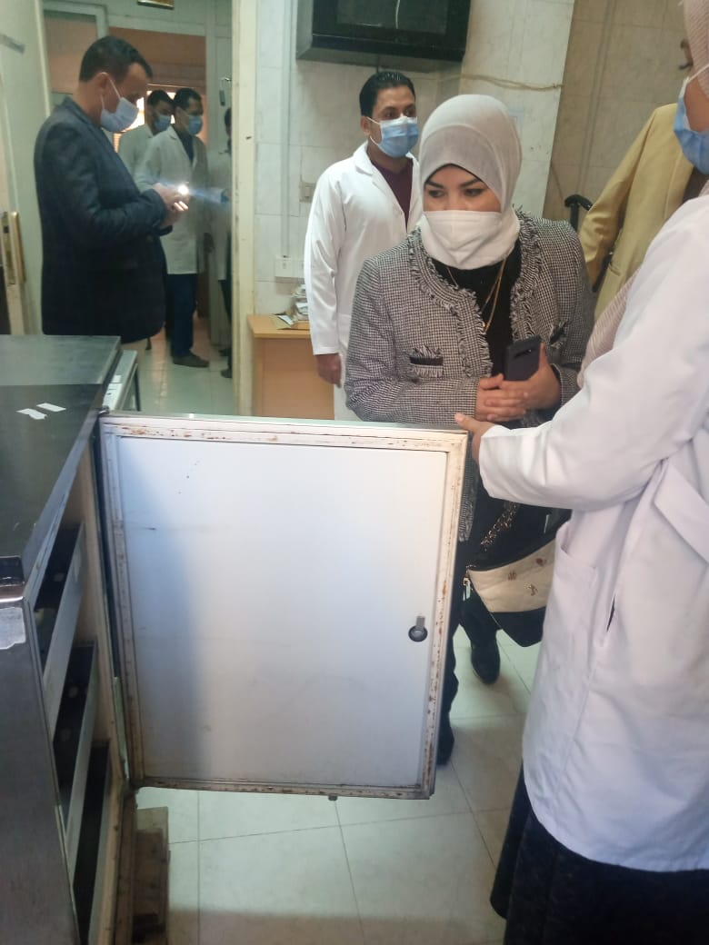 واطمأنت الدكتورة رجاء حسين خلال الزيارة لوجود أكياس أكياس الدم ببنك الدم والمستلزمات اللازمة لإجراء التحاليل الطبيه المختلفة .