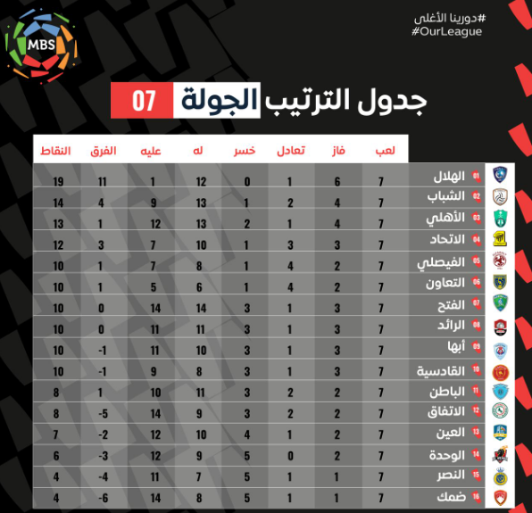 انتهت مساء اليوم الإثنين مباريات الجولة السابعة من بطولة دوري كأس محمد بن سلمان للمحترفين. ويتصدر فريق الهلال جدول ترتيب…